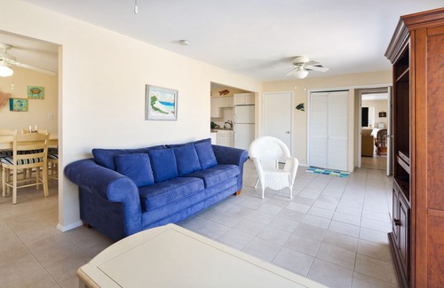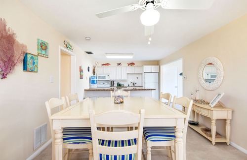 Make yourself at home at this lovely, dog-friendly getaway featuring a 35-foot seawall dock! Prepare delicious meals and beach snacks and enjoy them on the expansive deck overlooking the canal. This family-friendly home also grants you access to a shared, heated swimming pool - exactly what you need to cool off on hot summer days. Unwind in the living area after a day spent strolling around the area and watch your favorite shows on the large TV.