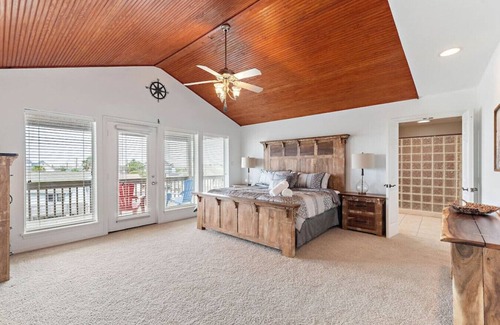 Reel in fun and family time at Hook, Wine & Sinker! This spacious 5-bedroom home in Surfside Beach, Texas, is perfect for creating memories that last a lifetime. Cast a line off the back deck overlooking the canal, just steps from the Surfside Marina. After a day of adventure, unwind in the game room or cool off on the multi-level deck. With plenty of space, a charcoal grill, and a quick drive to the beach, Hook, Wine & Sinker has everything you need for a relaxing and unforgettable getaway.