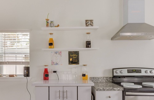 KITCHEN: Dishwasher, drip coffee maker, blender, toaster, fridge, stove & oven, microwave, dishware/flatware, trash bags/paper towels, cooking basics, bubbly bar