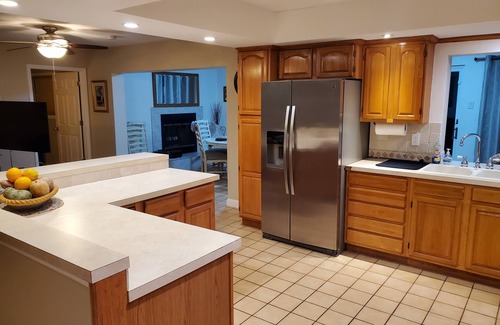 You'll find the living area in our home very open and welcoming. The large screen TV can be enjoyed from the family room couches or turned on it's swivel and faced towards the kitchen. The sunroom gives you a beautiful view looking West. Relax on the dual reclining loveseat and take in a beautiful sunset from indoors on those chilly winter nights.