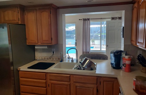 The pool area has a large patio set and two very comfortable sun-loungers. There is a propane grill out back to satisfy all of your barbequing needs. We have also recently installed a pool heater that can be used for an extra fee. Our floating dock is newly rebuilt and is perfect for fishing, drinking your morning coffee or watching the evening sunset. There is a 2-person kayak available for exploring the canal system throughout our neighborhood as well.