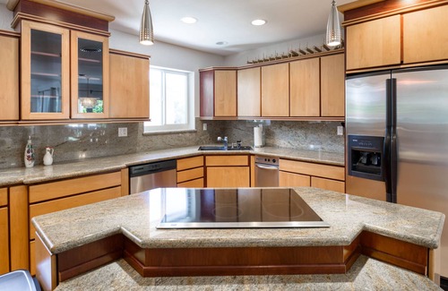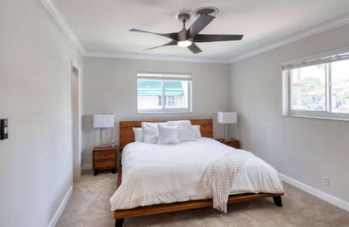 The gorgeous, single-level interior comes well-appointed for modern living with stylish design and updated features throughout. The spacious island kitchen makes a perfect centerpiece for group gatherings, with a deluxe suite of stainless steel appliances equipped to inspire home chefs. Meals can be enjoyed together at the dining table. When you've had your fill of sun and outdoor fun for the day, the living room welcomes relaxation with plush furniture and a smart TV for casual entertainment. Home essentials include central air-conditioning, free WiFi, and a private washer/dryer.