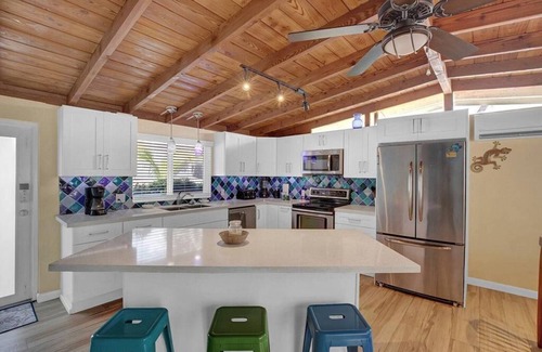 128 Tequesta Street - The perfect vacation home! This charming three-bedroom two bath home has everything you need for the perfect Florida Keys Vacation. With dockage, a pool, and a great outdoor bar and tiki hut, you'll never want to leave your private oasis. You can hang out and have a drink by the pool or take out the kayaks and paddle your way to Florida Bay. Inside, this home is perfectly set up for families and entertaining, with an open concept layout and bar seating. If you ever leave your little oasis, the home is located on Plantation Key, close to restaurants, shops, marinas and grocery stores.