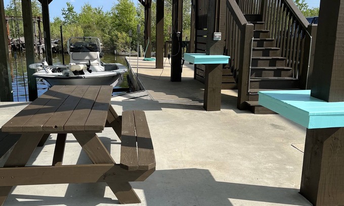 The boat lifts are not available at this time to renters, they are occupied. However, if you bring a boat we do have a deck on the canal you can tie up to. House is recently updated with a beautiful deck overlooking canal accessing Joes Cove. Lots of parking with downstairs seating area, barbecue grill and fish cleaning station.