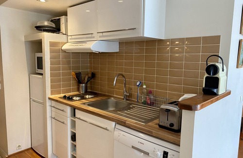 The separate kitchen area has everything you need: a Nespresso and filter coffee machine, all appliances (dishwasher included) plus a kettle, toaster, knives, forks, mugs , and many more surprises.
