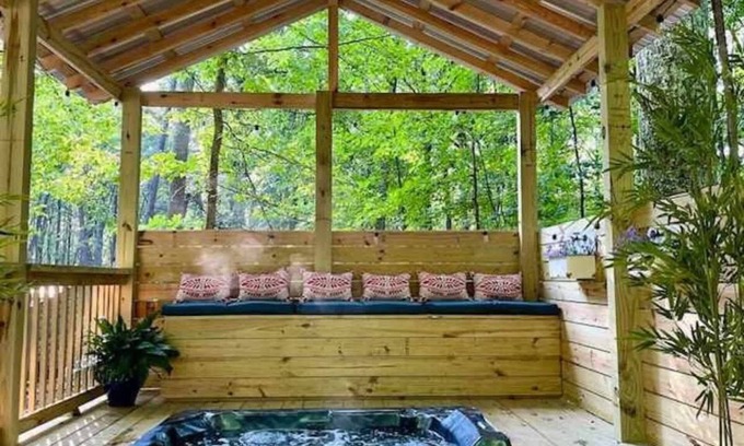 💦 Private hot tub nestled among the trees for ultimate relaxation.