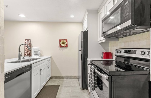 Beautifully Professionally Decorated Studio, Sleeps 2 Adults and 2 Children. The condo has a full kitchen (fridge, stove, oven, dishwasher), 1 king bed, 1 full bathroom with bathtub. The living room sofa has a pull-out queen sleeper with walk out to balcony patio. It is turn key and ready for your enjoyment. You will have access to the laundry room where you can do your laundry for free and hotel ice maker. Free parking is in the parking lot right outside your condo.