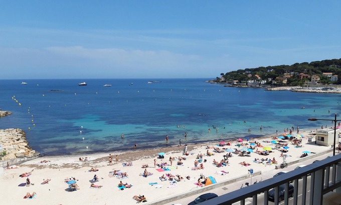 Ideal for two people, sufficient for 4 people, This T2 apartment perched above the beach of Salis (Antibes) has just been completely refurbished. Located on the 4th floor on the seafront, it has a 9m2 balcony, a sleeping area with a king size bed and a convertible sofa. A free parking space will complete your peace of mind. Deckchairs, scooter, balls, parasol are provided (cellar). It is air conditioned. (Wifi + TV)