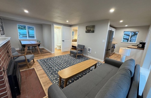 Experience the magic of the Oregon Coast in this freshly renovated oceanfront duplex cottage with gas fireplace, perfectly positioned on pristine Big Stump Beach. Step outside your door onto miles of sandy shoreline, where the rhythmic waves and coastal breeze create the perfect backdrop for your beach getaway.