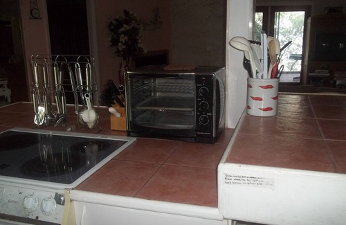 The main floor living area has TV and roku. Attached to the main floor living room is a large kitchen with stove, oven, counter top oven, full size frig with ice maker, microwave, dishwasher, blender, toaster, coffee maker, pots, pans, cups silverware and cooking utensils. Off of the kitchen is a screened porch with patio table and 8 chairs. The washer and dryer are hidden away on the screened porch. A large handicap accessible shower is located on the main floor. The home is unique in that there are no steps from your car into the home.
