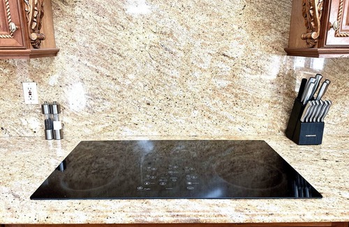 Indoor dining area and fully equipped modern kitchen with induction stove and dual ovens