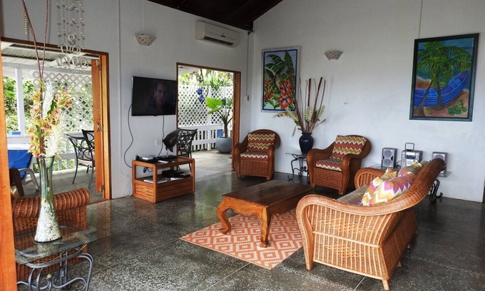 Bayview Villa is very private and beautifully landscaped. Its shared pool with private sun-terrace is set in a lush tropical garden. Offering panoramic sea views of Stone Haven Bay, the villa is only a short walk from Grafton Beach and a 2 to 3 minute walk from the happening hamlet of Pleasant Prospect with its cash stop, a small but well-stocked mini-mart and all the self-catering amenities needed to create the holiday of your dreams.