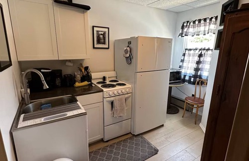Enjoy a quiet, private suite with river views, your own full bathroom, and a personal coffee station and microwave. Common areas and a full kitchen are shared with other guests. Located just a short walk from downtown Oswego. WiFi included for your stay.