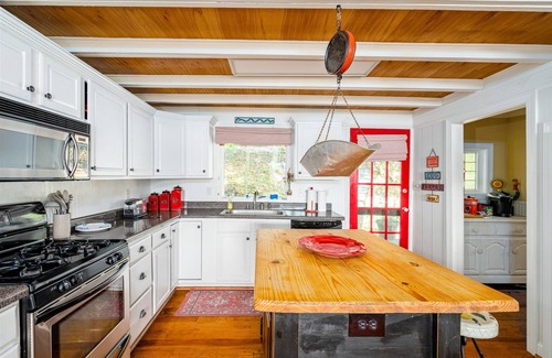 Come stay at this picturesque Lake Martin getaway with a large private dock and beach area with a fire pit! The home features 5 bedrooms and 5 bathrooms spread across the main house and an apartment. In the apartment, you will find a kitchen, dining, and living room area with access to 2 bedrooms, both with queen beds and ensuite bathrooms. Inside the house, there is a king bed in the primary located on the main floor, and two bed rooms upstairs with a bathroom between them, making it perfect for those needing space! The house also features the main kitchen, dining area, and 2 living areas with gorgeous views. A quaint porch that is perfect for morning coffee or an evening cocktail is located right off the main living area as well. The kitchen is stocked with all major appliances including blenders, toaster, pots, and air fryer. Standard and Keurig coffee makers are available! Enjoy all Lake Martin has to offer with the canoes and kayaks available down at the beach! Your furry friend will love the spacious yard - pets accepted with a $150 fee.