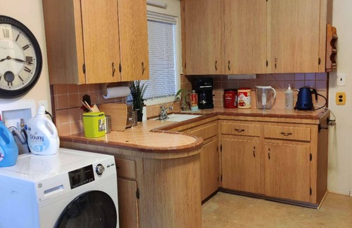 This 1-bedroom rental features a sitting area, a dining area, and a desk. Bathroom amenities include a hair dryer, towels, and toilet paper. The kitchen is equipped with an oven, a stovetop, and a full-sized refrigerator/freezer, as well as a microwave and cookware. And you won't have to pack extra clothes, because you'll also have access to laundry facilities. Other amenities include bed sheets and heating.