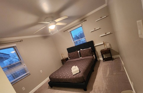 This house is a very captivating, spacious, & fun family space. This inviting home has four bedrooms. One of the rooms being a very big basement bedroom with an office. The house has central cooling and heating, a large dining and living room area for all your family's needs, a full bathroom upstairs and a half bath downstairs in the finished basement. Outside has a front porch and a huge, spacious backyard that boast 3 private parking spaces. We take pride in the cleanliness of our spaces.