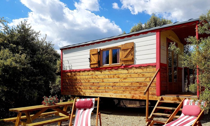 In the heart of the Truffier Oaks, on the heights of Limoux, you will find the beautiful Truffière caravan located due south with a magnificent panorama of the Aude and the Pic de Brau.