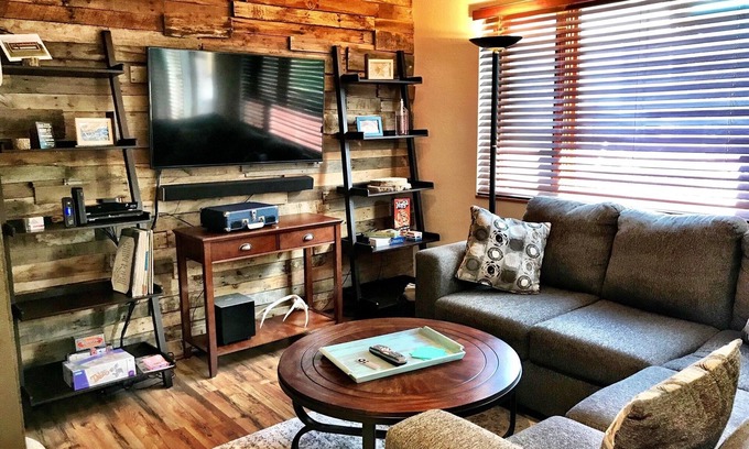 Great for families or groups. Sleeps 5. 2bed/2.5 bath. Master bedroom offers queen-sized mattress and upgraded bathroom with walk-in shower. Second bedroom comfortably sleeps 3 with a twin-over-full bunk bed and has an attached bathroom with a shower tub.