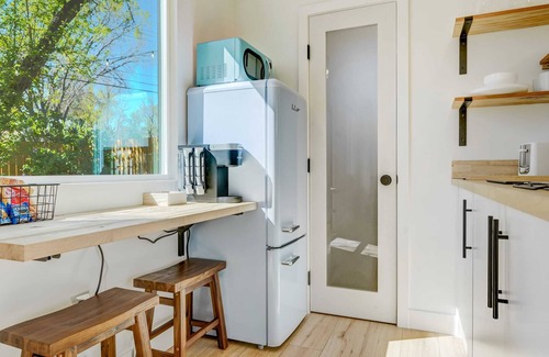 Explore Colorado Springs while unwinding in this unique 200-square-foot studio container tiny home. Perfectly located for both relaxation and adventure, Cargo Casita offers a cozy retreat with a private backyard and fire pit, while being just minutes from some of Colorado’s best outdoor activities and attractions.