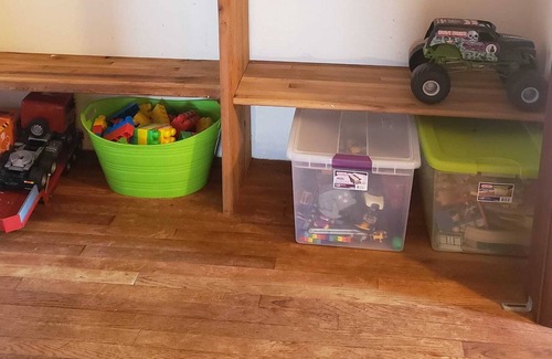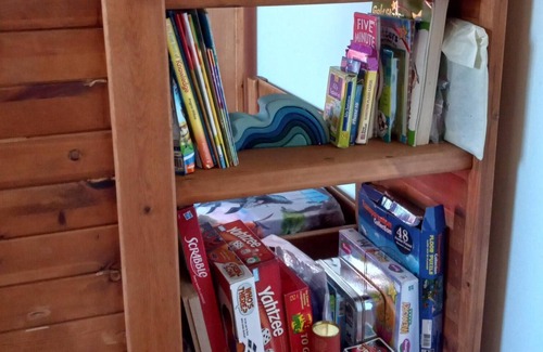 The room with the Bunk Bed is equipped for kids, with kid-themed sheets for the mattresses, a kids library of books and games, a desk full of coloring and drawing supplies, and a closet full of toys for kids of all ages. Much space is available for kids to play in the room and the balcony has a carpet that can be placed out there as well (with supervision).
