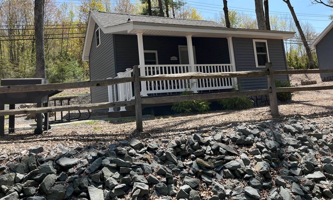 Located steps away from Lake Wallenpaupack, our Carins Cabin is a 1 level cabin that sleeps 4 people with a full size sleep sofa and a bedroom with a queen size bed. The cabin has a full kitchen complete with pots and pans, electric range, Keurig coffee maker, fridge, and microwave. A full bathroom with a shower is also located on the first floor. Outside you'll find a charcoal grill, picnic table, chairs, and fire pit. Bringing up a boat? Ask about our dock slips or dry dock options.