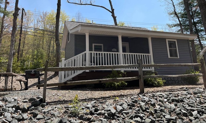 Located steps away from Lake Wallenpaupack, our Carins Cabin is a 1 level cabin that sleeps 4 people with a full size sleep sofa and a bedroom with a queen size bed. The cabin has a full kitchen complete with pots and pans, electric range, Keurig coffee maker, fridge, and microwave. A full bathroom with a shower is also located on the first floor. Outside you'll find a charcoal grill, picnic table, chairs, and fire pit. Bringing up a boat? Ask about our dock slips or dry dock options.