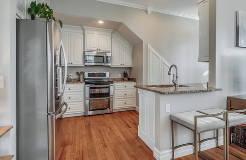 With double porches overlooking the park, an outdoor dining table, and a large porch swing, this home is perfect place to sip your morning coffee or savor an evening glass of wine.