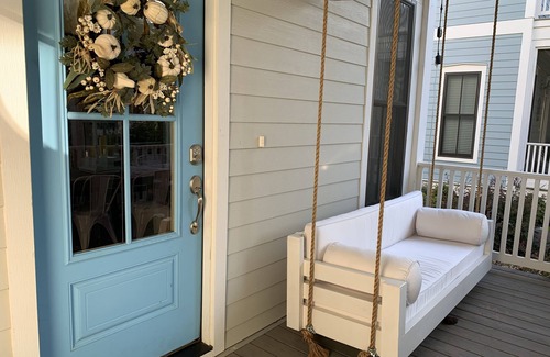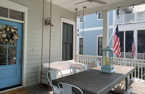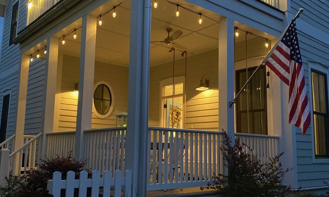 The Toasted Coconut- A Carlton Landing Cottage. Private fire pit patio area with string lights and screened in porch with barn door. Ask about use of our 6 seater golf cart.