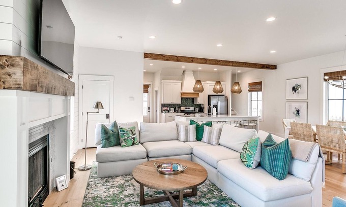 The second floor presents a beautiful king en-suite with king bed, abundant natural light leading to the balcony where you can enjoy your morning coffee, and a private bathroom. This level also offers 2 additional guest rooms, 1 with a king bed and an efficient bunk room with 6 twin beds, and a shared bathroom with a shower/tub combo.