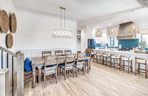A notable feature of this home is all bedrooms have en-suite bathrooms. The primary king suite is located on the first floor. The second floor features the secondary king suite, a guestroom with a queen bed, and an oversize bunkroom boasting four queen beds.