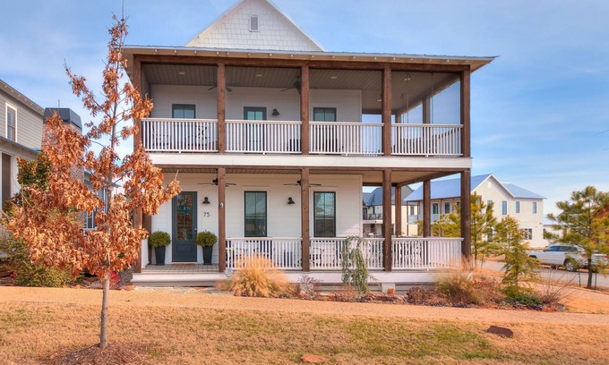 This gorgeous 4 bedroom, 3.5 bath home is full of exciting features. There is a master suite available on the first and second floor. Both include a king-sized bed and their own private bath. Located on the second floor, you will find 1 queen, 1 full/1 twin/1 trundle bunked, 2 twins bunked, and 1 twin pullout chair in the master bedroom. This home is located on a ridgeline that has a lake view from the screened-in balcony. Beautifully decorated and makes it seem like you are right in the middle of Seaside. Recently added outdoor firepit with string lights is the best place to enjoy time with family and friends.