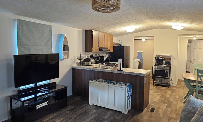 This 3-bedroom mobile home in Berlin is perfect for your vacation. Just 1.5 miles from Berlin's town center , 7 miles from Assateague beaches and 9 miles from Ocean City's inlet. With a queen bed, full bed, and twin bed, this welcoming property offers a wonderful living space with a fold away full bed and child cot bed. Enjoy the convenience of amenities like a washing machine, AC, WiFi, iron, hair dryer, and heating.