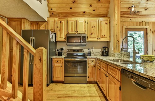 Fully equipped kitchen: Refrigerator, stove, oven, microwave, dishwasher, toaster, coffee maker, dishes, glassware, utensils, cutlery, pots, and pans. Linens for each bed, 2-bath towels, 1-hand towel, 1-washcloth per person listed on guest list, dresser or closet for clothing storage, central heat & air, washer/dryer, vacuum and/or broom and dustpan, mop, internet, and propane gas grill. In addition, we provide a complimentary start-up supply of Toilet Tissue (1 roll per bathroom), 1- roll paper towels, 4- kitchen garbage bags, dishwasher detergent, dishwashing liquid and laundry detergent for at least 2 loads. Many of our cabins include more than this basic list of inventory items. The only items you'll need to bring will be food, beverages, and condiments.
