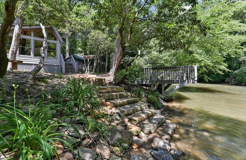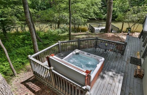 Are you looking for that perfect river cabin…well, look no further. Cartecay Canoe House sits right on the Cartecay River. This cabin has tons of charm and plenty of room for the family. Cartecay Canoe House has 2 bedrooms, 2 baths in a cozy and comfortable atmosphere. Beautifully decorated withceiling to floor windows which allows you to enjoy watching the river stream while lounging by the indoor wood burning fireplace. Fish right outside your back door and then continue your fishing experience by preparing your trout in this well-equipped kitchen.Cartecay Canoe House has all the amenities you need close by with the relaxing feel of home. The cabin sits on a river that is conveniently connected to the exit point for several river outfitters. You can traveldownstream with akayak, canoe, paddleboard or tube and enjoy the beautiful scenery of the river which extends to the rapids. Not that adventurous, try your luck at fly fishing in one of the best rivers for trout fishing in North Georgia. One thing is for sure, you will love Cartecay Canoe House and will want to return time after time.