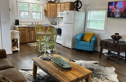 Great Location centrally located 1/2 block from Main Street, Medina River and the world-famous 11th Street Cowboy Bar and Arkey Blues honkytonk. Full size kitchen with utensils if you want to make your own breakfast or dinner. Bedroom has television with a queen size bed. Living room has queen size sleeper sofa. Wi-Fi is included. Enjoy the wildlife sitting around the firepit or sit on the porch listening to the music from the nearby honkytonks.