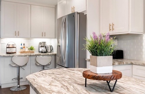 The heart of Casa Azul is its fully equipped kitchen, featuring modern amenities and a dining area that seats 8 between the table kitchen island. Whether preparing a family meal or serving a quick brunch, this kitchen is ready to facilitate your culinary adventures with ease.