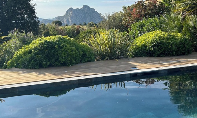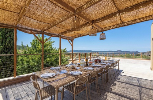 2 new suites: 2 double bedrooms + 2 bathrooms in the house under the 100m2 terrace with a view of Cap Corse and the desert.