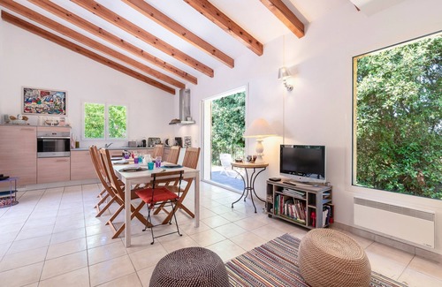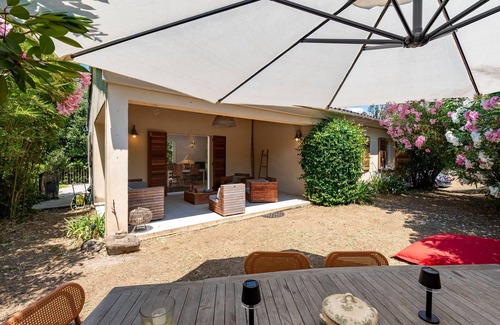 The Cocoonr/Book&Pay agency offers this charming 85 m² flat overlooking lush vegetation in the commune of Cauro, which can accommodate up to 6 guests. On the second floor, it comprises a pretty 35 m² living room, an open-plan kitchen, three bedrooms, three bathrooms (with shower) and a 200 m² garden. Wifi, bed linen and towels included, we're waiting for you!