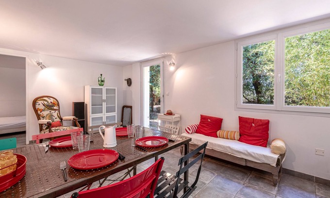 Cocoonr/Book&Pay offers this charming 60 m² flat overlooking lush vegetation in Cauro, which can accommodate up to 4 travelers. Located on the first floor, it comprises an attractive 30 m² living room, an open-plan fitted kitchen, two bedrooms, a shower room and a 380 m² garden. Wifi, bed linen and towels included, we're waiting for you!