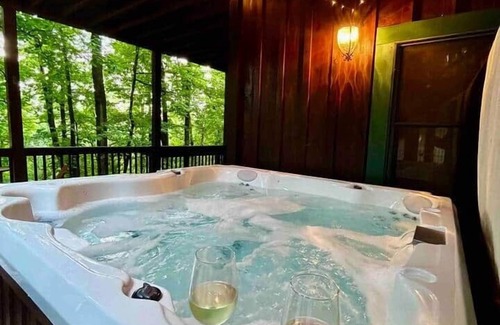 Casa Bohemia is nestled atop Beautiful Walnut Mountain, which boasts some stunning views. Between the game room, hot tub, seasonal pool, lakes, waterfall, hiking trails and a tennis court, there is something for everyone! We provide fishing gear! The vibey hillside retreat can comfortably sleep up to 11 people. It's only 10 minutes from downtown Ellijay and only 25 minutes from downtown Blue Ridge. This dreamy cabin has a fully equipped kitchen, Blackstone Griddle and a gas powered fire pit! Casa Bohemia is spacious and sleeps up to 11 people. There are three proper bedrooms, a super vibey sleeping loft, a sofa bed in the living room and a cot that can be set up in the game room. There are two levels to the porch, the bottom level containing the hot tub and the top level is fully screened in and has ample places to lounge, eat and even a Blackstone Griddle. We recently added a pergola to the front of the house and it has a gas powered fire pit, bring your s'mores! Guests have access to all of the house and all of the amenities the resort has to offer. This resort truly HAS IT ALL! Four lakes, all stocked with fish, a 12 ft, pristine pool, hiking trails, a waterfall and tennis courts. We have a map on site that can show you where everything is. Lake Dokwa is within walking distance. Turnip Town creek is at the bottom of the hill. It is really lovely and has picnic tables. Text us!! We will be available from the hours of 8am-11pm for your entire stay. We are very attentive hosts and it is our goal to make your stay 100% awesome. Located 10 minutes from downtown Ellijay and 25 minutes from downtown Blue Ridge, our little hamlet is nestled along the ridges, slopes and dells of Walnut Mountain - about 2500 ft above sea level. The elevation and the shady forest cool the air. Walnut Ridge boasts spectacular views, especially in winter. The pool, lakes, tennis courts and office are all accessible by paved roads. You will find two programed hang tags on a hook in the living room that will allow you to access all gates in the resort effortlessly. Directions to enter the gate when you initially arrive will be sent with your welcome letter 24 hours before your stay. There is plenty of parking!