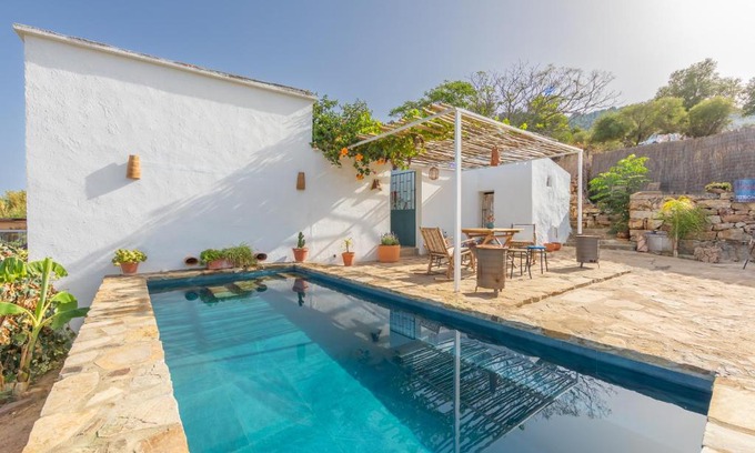 Casa CORTIJO Piscina privada is a recently renovated villa in Tarifa where guests can make the most of its pool with a view, open-air bath, and garden. With pool views, this accommodation offers a balcony. The villa features rooms with air conditioning, free private parking, and free Wifi. The villa provides guests with a terrace, mountain views, a seating area, satellite flat-screen TV, a fully equipped kitchen with a dishwasher and an oven, and a private bathroom with shower and a hair dryer. A microwave, a toaster, and fridge are also available, as well as a coffee machine and a kettle. Additional in-room amenities include wine or champagne, fruit, and chocolates or cookies. During warmer months, you can make use of the barbecue facilities and eat on the private patio. Guests can take advantage of yoga classes held in house. Sightseeing tours are available in the neighborhood. If you like to discover the area, cycling, hiking and walking tours are possible in the surroundings and Casa CORTIJO Piscina privada can arrange a bicycle rental service.