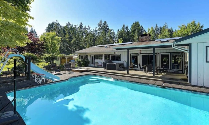 Nestled in the heart of Southern Vancouver Island, Casa De Kai is a magnificent 4-bedroom country family fun estate that promises an unforgettable vacation for you and your loved ones. With its tranquil surroundings and thoughtful amenities, this stunning vacation home is destined to create cherished memories for a lifetime.