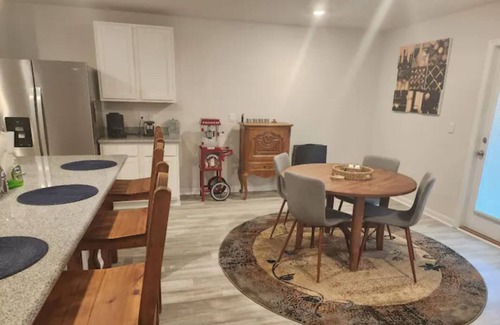 This cozy home is suitable for a family, group of friends, or business travelers. It has all of the amenities necessary to enjoy your stay. There is a private yard, laundry facilities, and a fully stocked kitchen. For entertainment, guests can enjoy a flat-screen TV and high-speed WiFi.