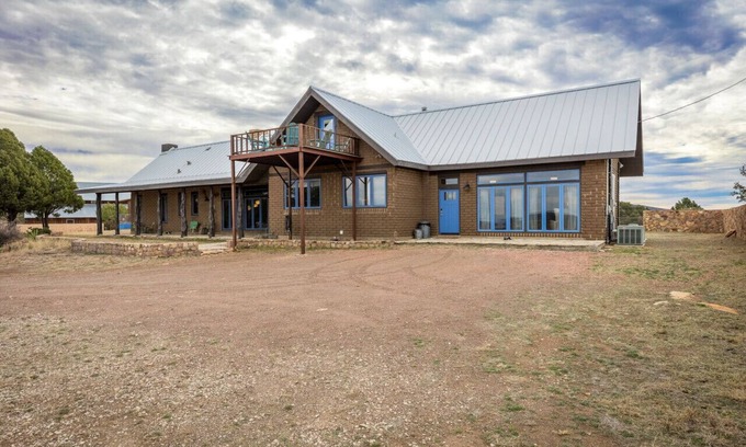 Casa de Piñon is a tranquil mountain retreat with five bedrooms and three baths tucked in the Del Norte Mountains. Enjoy amazing views and hiking on the 199 acres and beautiful home with over 3200 square feet. Wildlife abounds around this property and catching a glimpse of elk, mule deer, and javelina would not be uncommon. There is ample space indoors and out for this to be an amazing mountain retreat for your group.