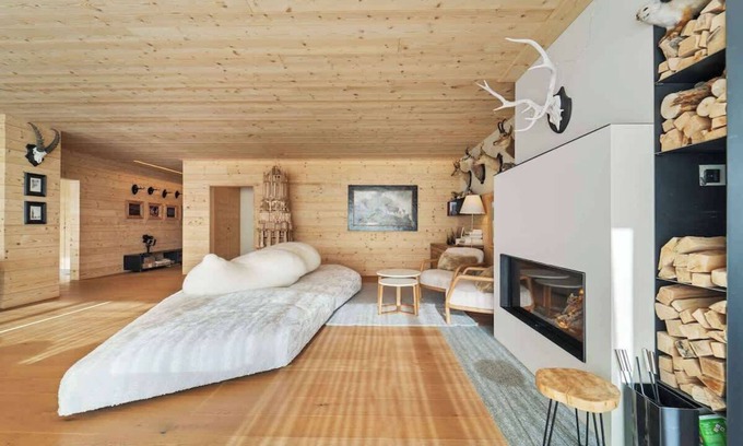 285 mq di raffinatezza con spa privata, terrazza di 30 mq, giardino e garage. A soli 150 m dalle piste da sci, raggiungibili anche con lo ski bus gratuito a 20 m. Gli interni, in legno massello naturale e pietra di Lucerna, creano un'atmosfera calda e accogliente.