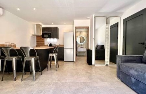 Kitchen: Fully equipped with American fridge, oven, microwave, induction hob, kettle, toaster, Nespresso coffee maker and practical central island.