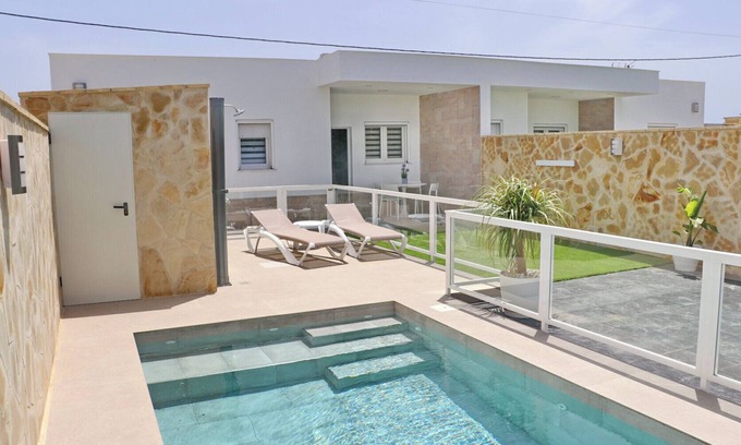 Beautiful and modern newly built holiday rental apartment in a detached house with private pool, less than six minutes from the coves of Roche and its beaches, with garden and covered and uncovered porch to enjoy the cool of the night.