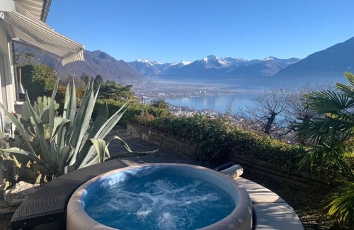 Modern, privately situated, detached single-family house in Orselina, above Locarno. Beautiful and stylish furnishings. Private garden with grill, jacuzzi, sauna and terrace with a fantastic view of the lake and mountains!