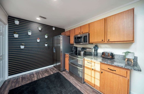 Welcome to this vibrant 4-bedroom, 2-bathroom home full of charm and personality. Eclectic décor and modern touches create a warm, inviting space throughout. The kitchen is fully equipped and functional, perfect for easy meals. Outside, enjoy a spacious fenced backyard with a firepit, shaded seating, and room for pets to roam. It’s the perfect retreat for relaxing, entertaining, or making lasting memories.