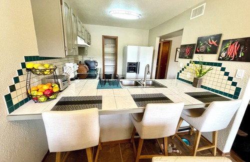 This beautiful 3-bedroom, 2-bathroom smoke free, vape free and cannabis free condominium, right on the Pecos River comfortably sleep 6 guests throughout the appointed living space, fully equipped kitchen making it an ideal choice for both short stays or longer visits. You'll feel at ease the moment you first step inside the home's gorgeous interior, adorned with tasteful decor. This is a great and picturesque location to relax and unwind after you come back from exploring Carlsbad.